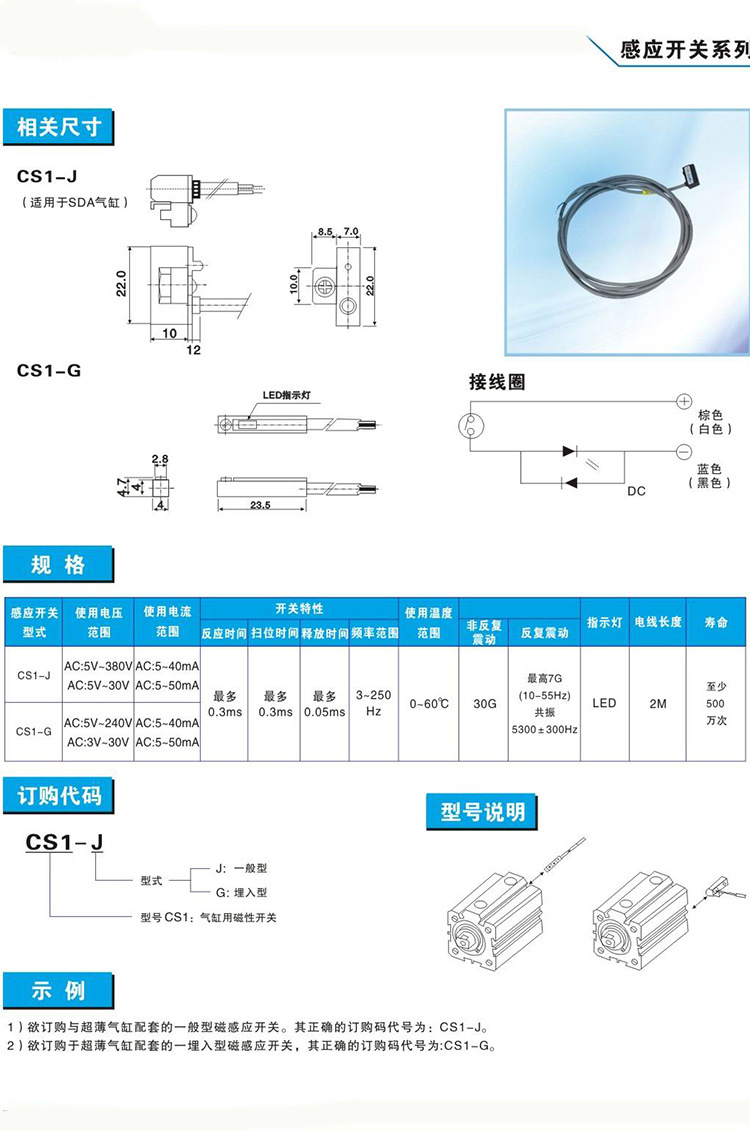 | 型号 | 磁式 | DC/AC二线 | NO | CS1-G |